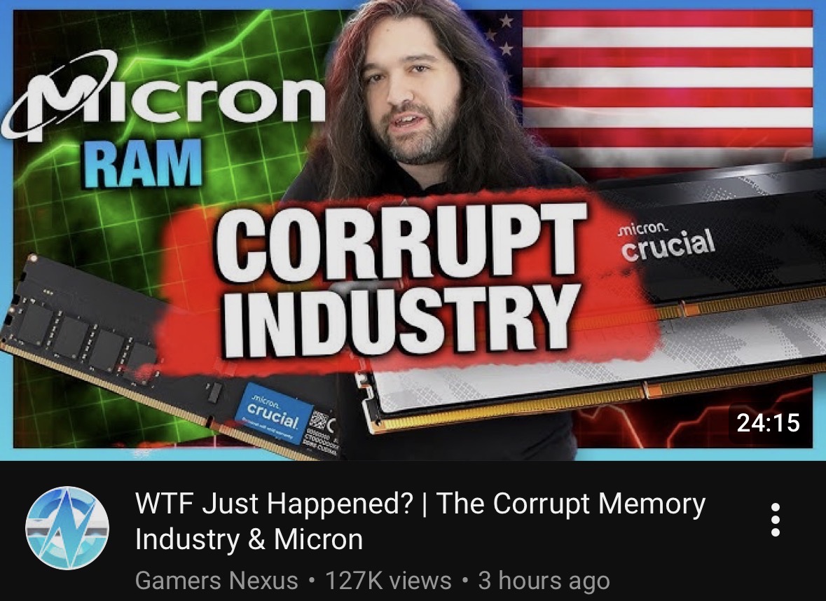 Cant wait for RAM prices keeping the way they are even if the demand goes down in a year or two just how some prices kept being overpriced despite the covid shit being over for the most part. Its crazy how the PC market kept getting fucked for several years in a row.