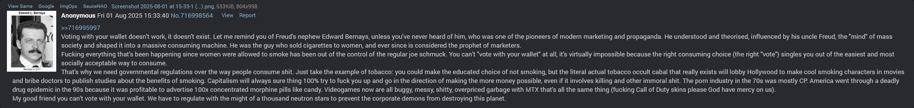 >>727622397>le vote with ur vallet guiseYou are either a damagecontrolling industry plant or a gullible retard.