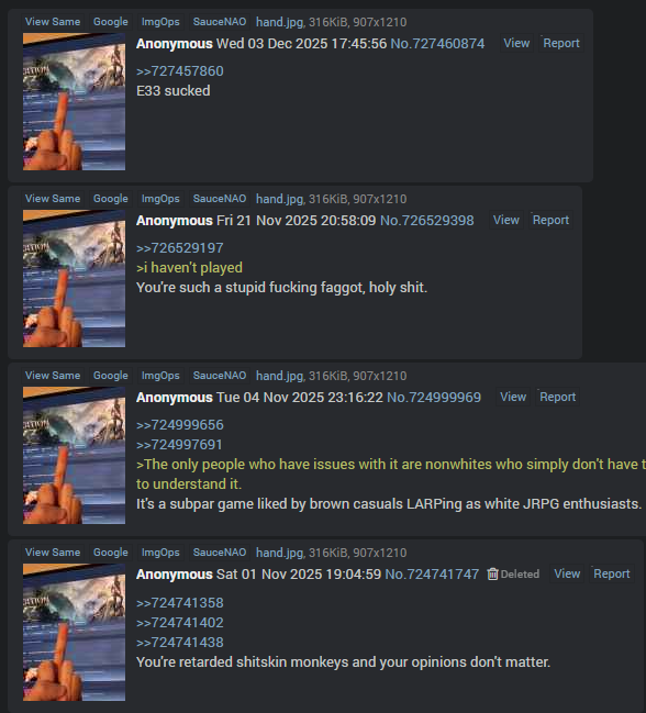 >>727647910>Anti-E33 posts his white hand>E33-fags can't do the sameWhy are E33-fags so low IQ that they keep reposting a screenshot that proves they real whites don't like their brownoid game?