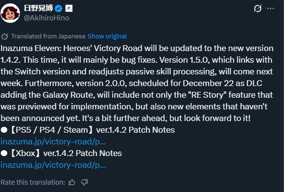 >>7276760801.4?https://www.inazuma.jp/victory-road/en/patchnote/ps-steam/ver_1_4_1/