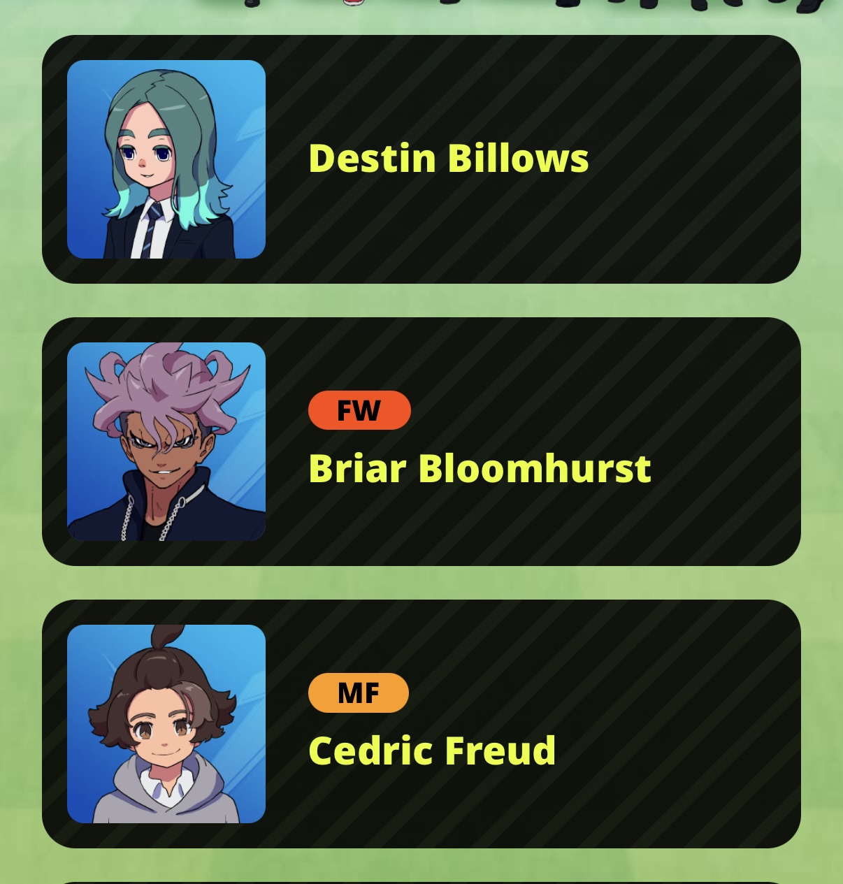 >>727728658>>727728575This is what I picked up so farI am unsure regarding Megane, since Someoka was kinda "the third" one on the Raimon, but Megane is cool and was before fire tornado dude was in so I think I´ll keep him