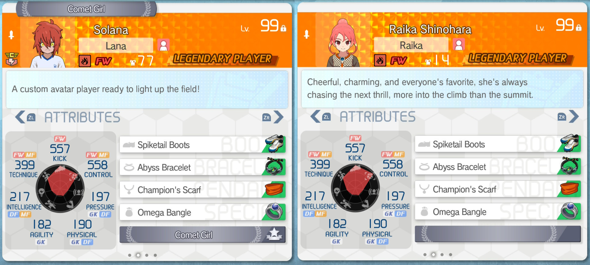 >>727735531One thing I noticed with managers and coordinators, they always roll the same passives. This applies even when they're in a different role form their main one. If you want an example, Aki is a Tension coorinator. She will always get Shot Atk for same and different elements, Atk/Def focus no matter what. When it comes to builds, she always gets Shot Atk at max tension and Team Tension bonus, she will never roll the other tension passives as a coordinator. But if you get her as Justice, she always gets Team Atk/Def without fouls and Team Bond Power when tackling, she'll never get other Justice passives. This all will be irrelevant when they revert the changes, but just so you know.
