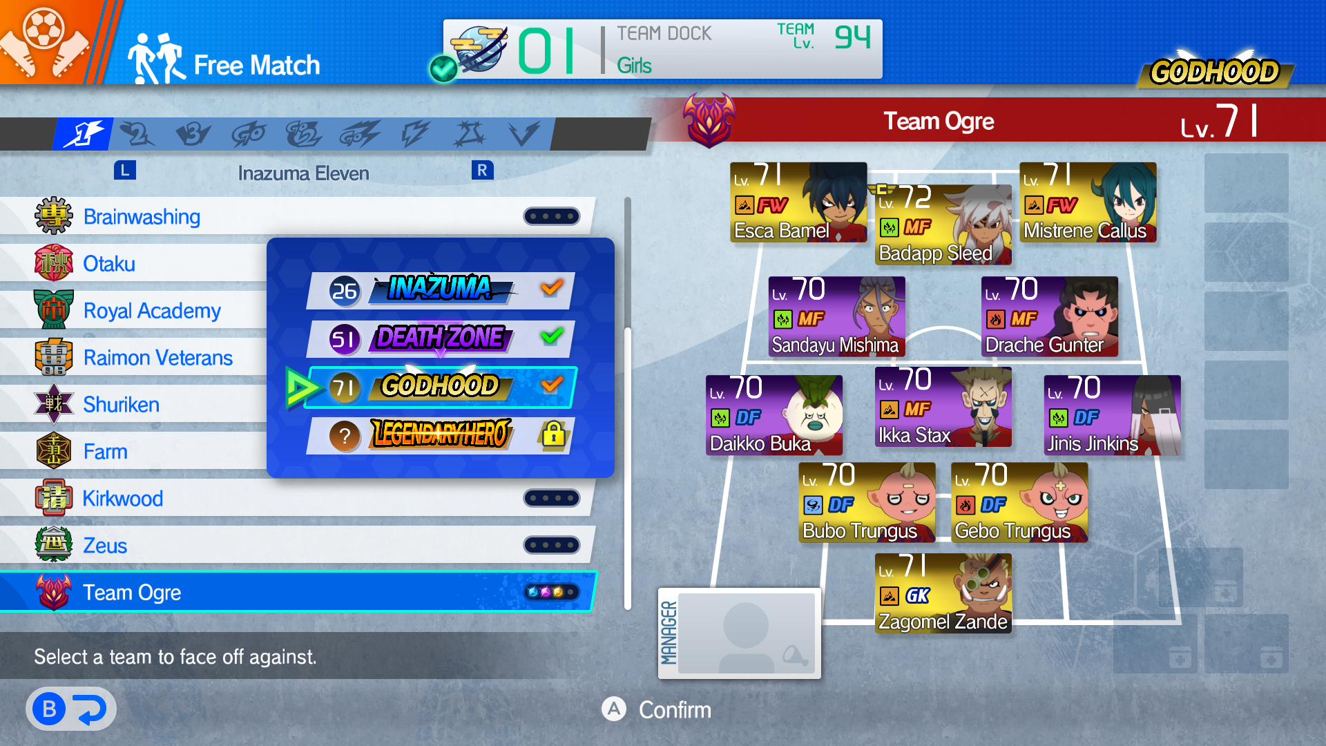 >>727738580>Generic team I use to farm orbs>The cooler generic team (I put only the coolest dudes n gals here)>Girl team>Inazuma Evelen first arc captains + some inazuma eleven 2 arc captains to fill the bench>C team of the sloppy seconds of all the team>GLORIOUS NIPPON TEAM (niggas that look japanese)