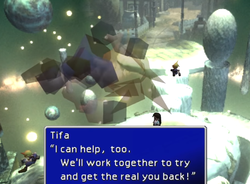 >>727687709My biggest concerns for part 3> will they do the lifestream sequence with cloud x tifa right?> WTF Are they going to do with Zack?