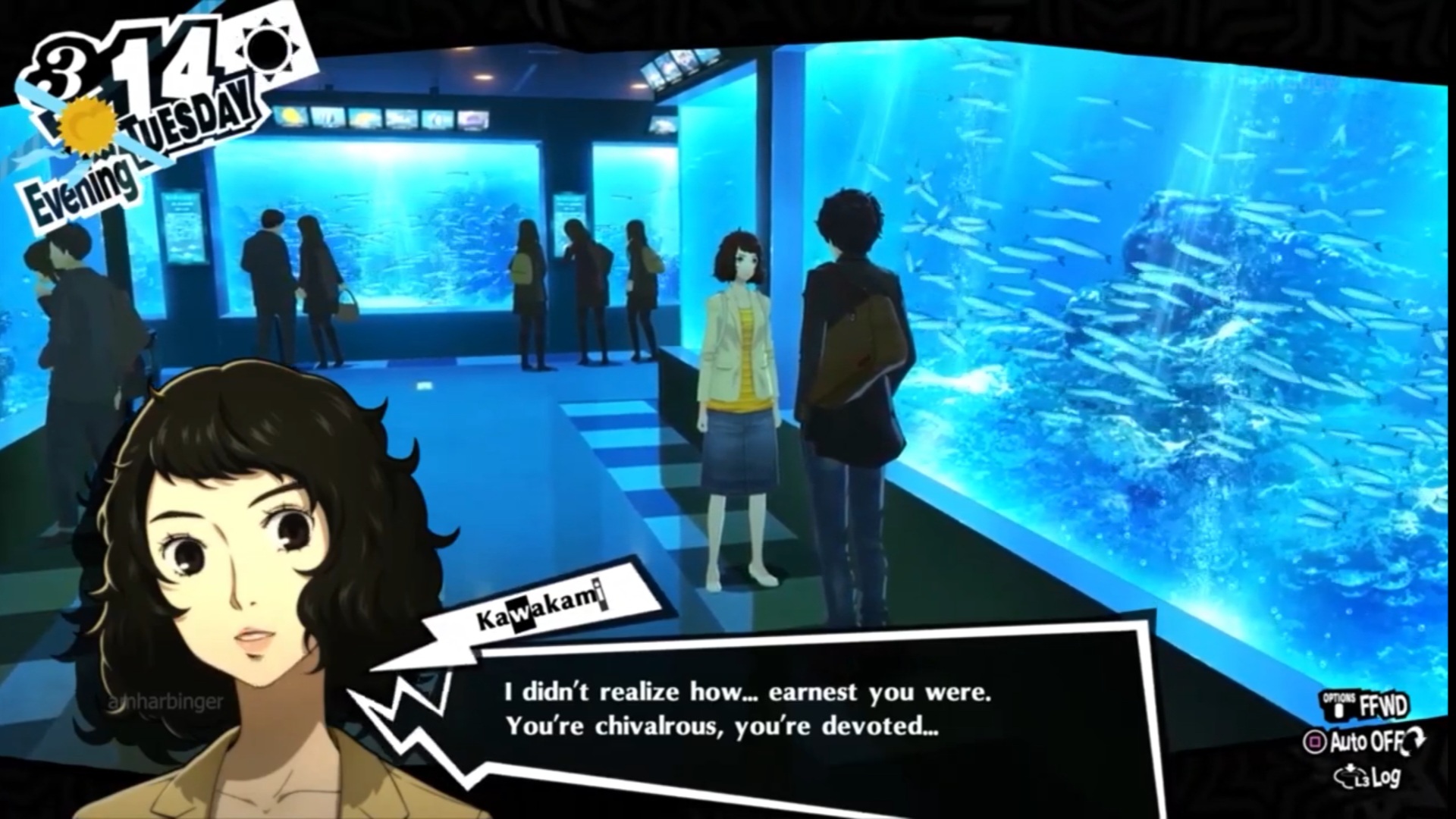 i never understood picking one of those side characters in the persona games. the girls in your party who get a lot of dialogue and have their personalities fleshed out more through the main story are always more endearing to me. i did save my game and watched the kawakami romance scene tho, since it was kinda where my heart was