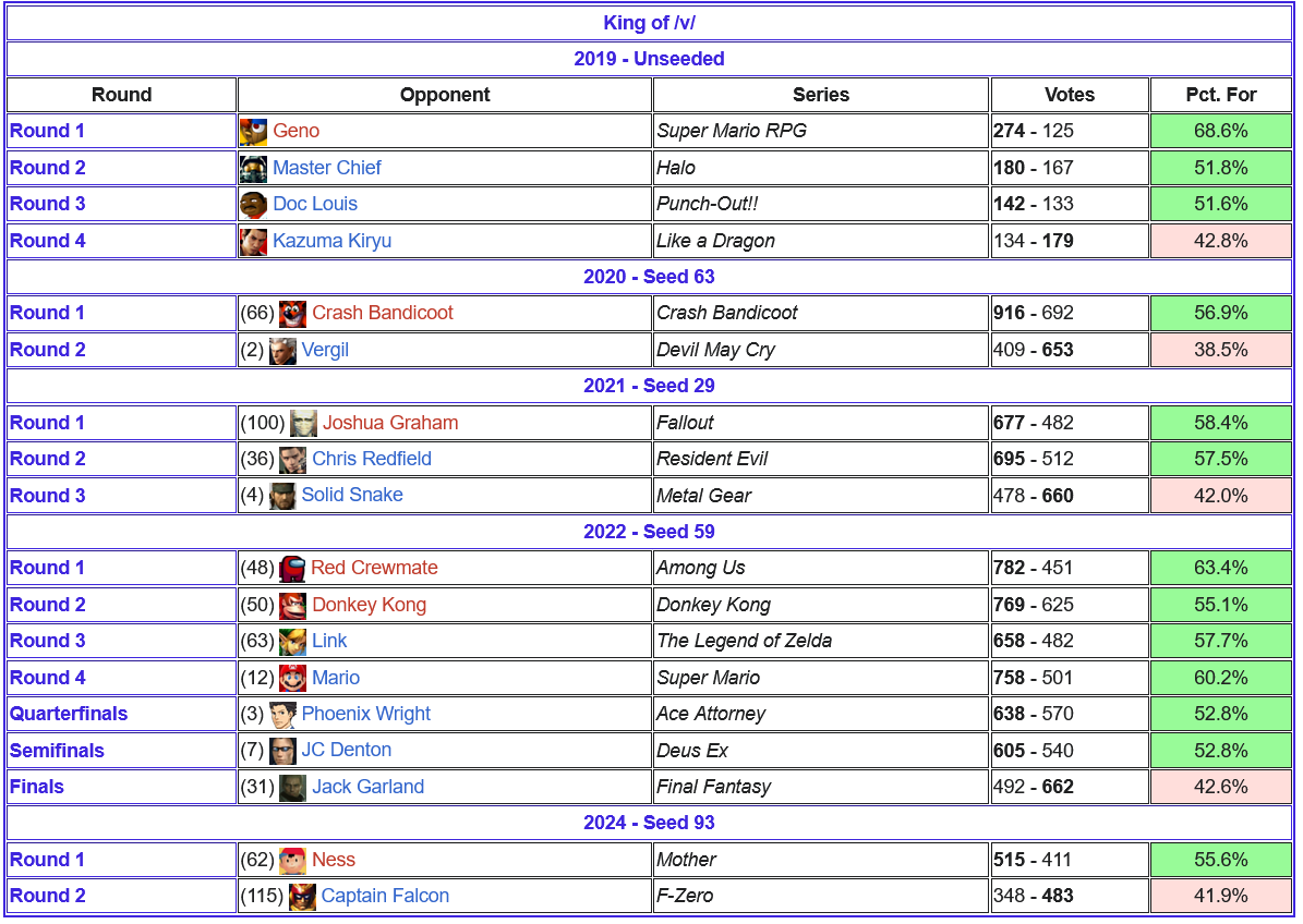 Welcome to the 7th annual King of /v/ tournament!