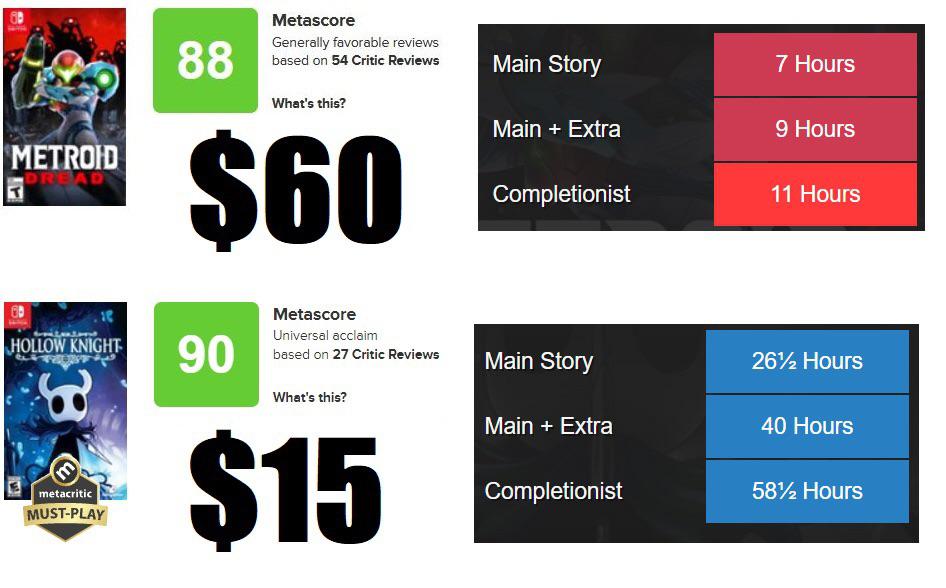 >>727729741I would pick the top over the bottom every time. 20 hours is way too long for a metroidvania and it drags on by the end.The cost of it all is irrelevant to me because I'm not poor