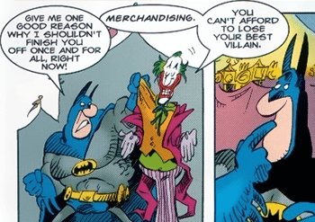 >>727753156The reason Joker isn’t killed is he makes too much money. That’s it. You’ll notice that in closed off continuity’s like the DCAU, Arkham, Joker, Tim burton Batman, injustice etc, the joker is always killed off simply because having him around long term makes no sense