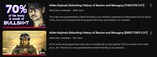 *but not only are these videos bad, the guy who made it is also a fucking asshole.The first one is the one with more views (and obviously the most understandably disliked) while the second one is the same (and a more recent video) but with an added segment with Death Stranding 2.