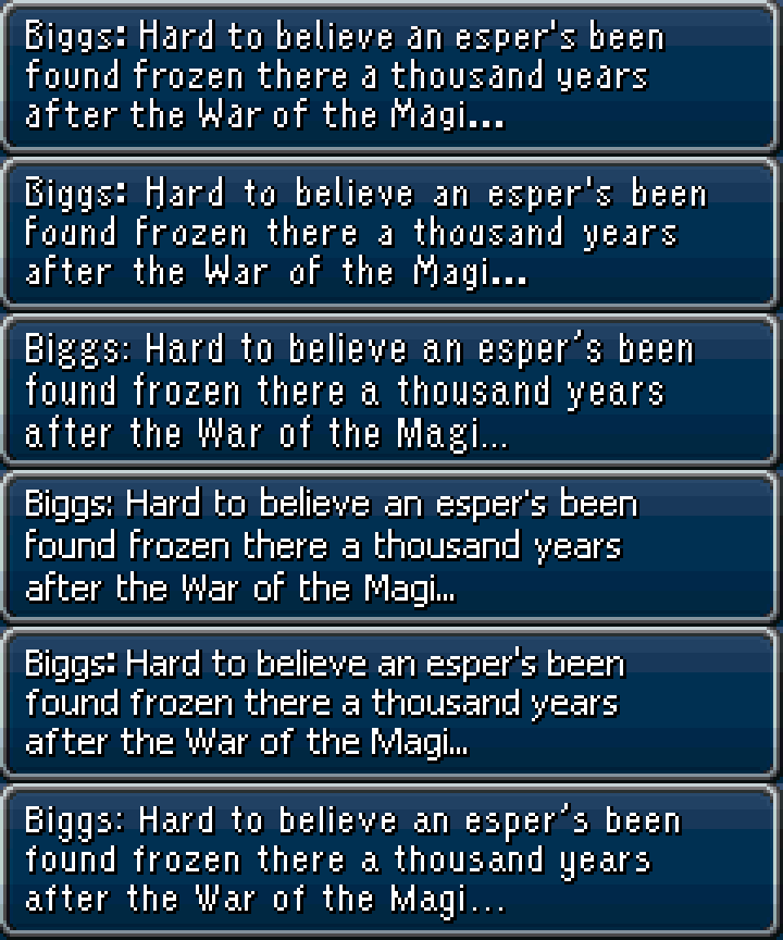 >>727768183>What's the appeal of Final Fantasy V?The amusing dialogue and pop culture references.