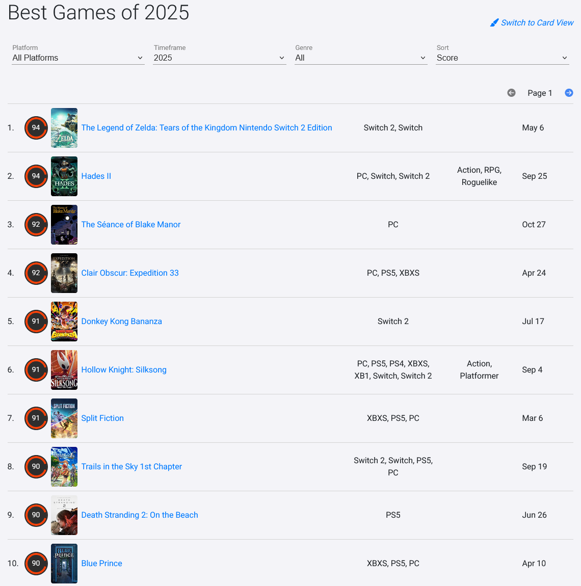 >critic scores