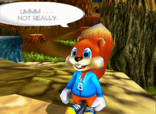 >>727830231You knew they were ACHING to make Conker, with how many dirty jokes were in Banjo-tooie.>>727830305Chris Seavor did a great job. It's got that "we care exactly enough to make it as funny as we can and no more" charm, like Aqua Teen Hunger Force, golden age South Park or Pre-cancellation Family guy.