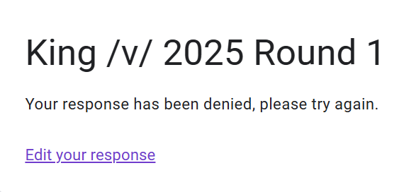 Barred from King /v/ 2025 is now real! Where we dropping, boys?https://forms.gle/uiTwrPsPUoZrwLKq7