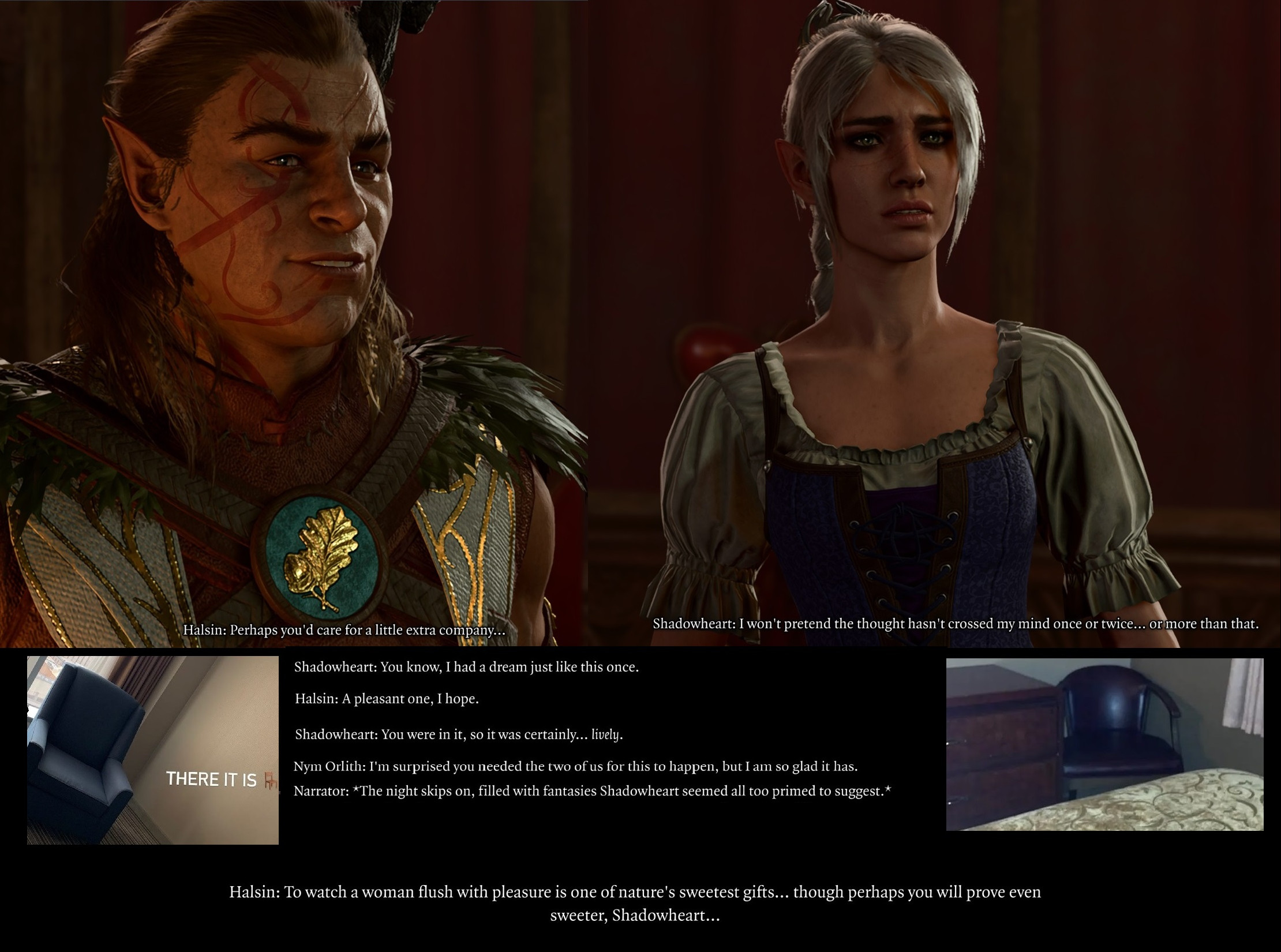 Eh, people in relationships are still attracted to other people, and it only happens if you bring up the threesome, insist on it, and bring that specific group for that specific purpose. I always play as a female self insert anyways, so I just eat out Shadowheart while Halsin plows me, or vice versa, and then different variations with the Drow twins