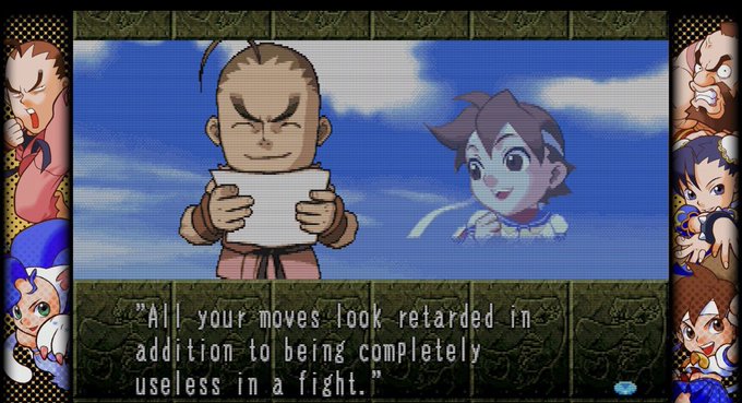 >>728329598>RaulWho gives a shit? M. Bison is supposed to be physically intimidating and beat the shit out of you the player. I don't care about this other shitty movie. This wimpy fag can't headstomp you or use his psycho crusher. He eats a bagel and cries about his arthritis, they already fucked up
