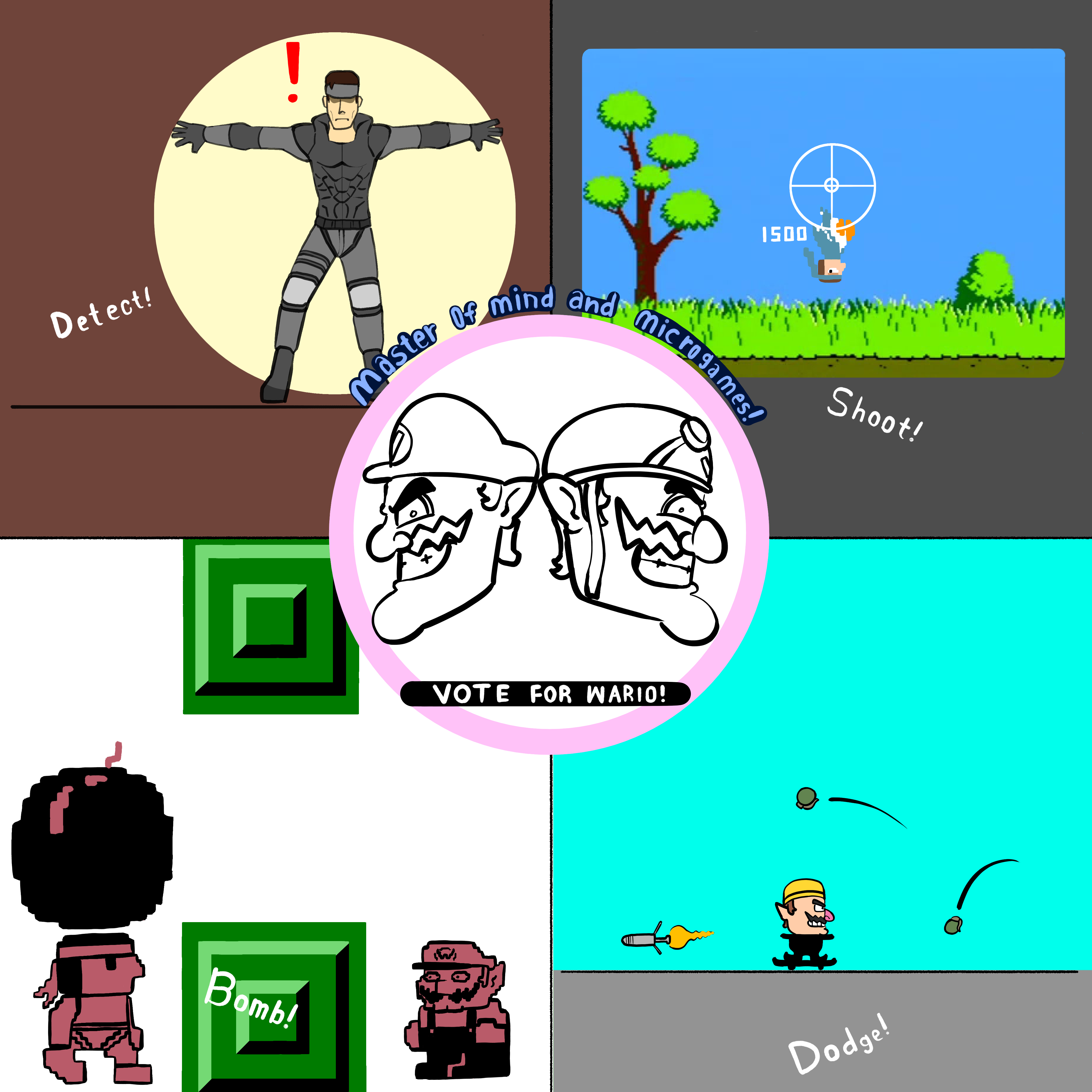 Otocon I'm on my way to the Smash Battle... Wait something feels... Nostalgic...>WAAAHAHAHA! Hello Mr Snakey, would you like to play some Warioware games?Wario!? For a second their I thought you were Albert Einstein>And your no Mel Gibson Snakey. Now let's see if if your itchy trigger finger is up to parJust my luck, but I've been through my share of VR missions>HA you might get to re-experience them, along with some others and special guests. You remember 5-Volt right?Oh God, that lady's a nightmare to stay hidden from. Your a sick man Wario, you remind me of a certain Ocelot>BWAHAHAHA! Thank you. Now are you Ready to GameBring it on Big Boy>No pressure. Just don't screw up! Have a Rotten Day!