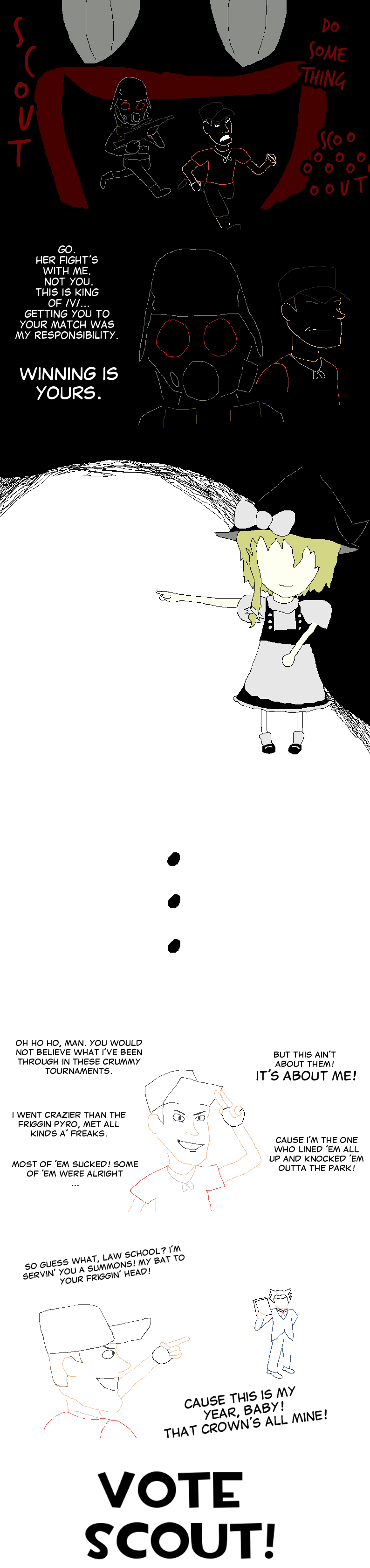 >>728348838Fuckin' nice. Scout has been through a lot. Both canon and fanon tourney.
