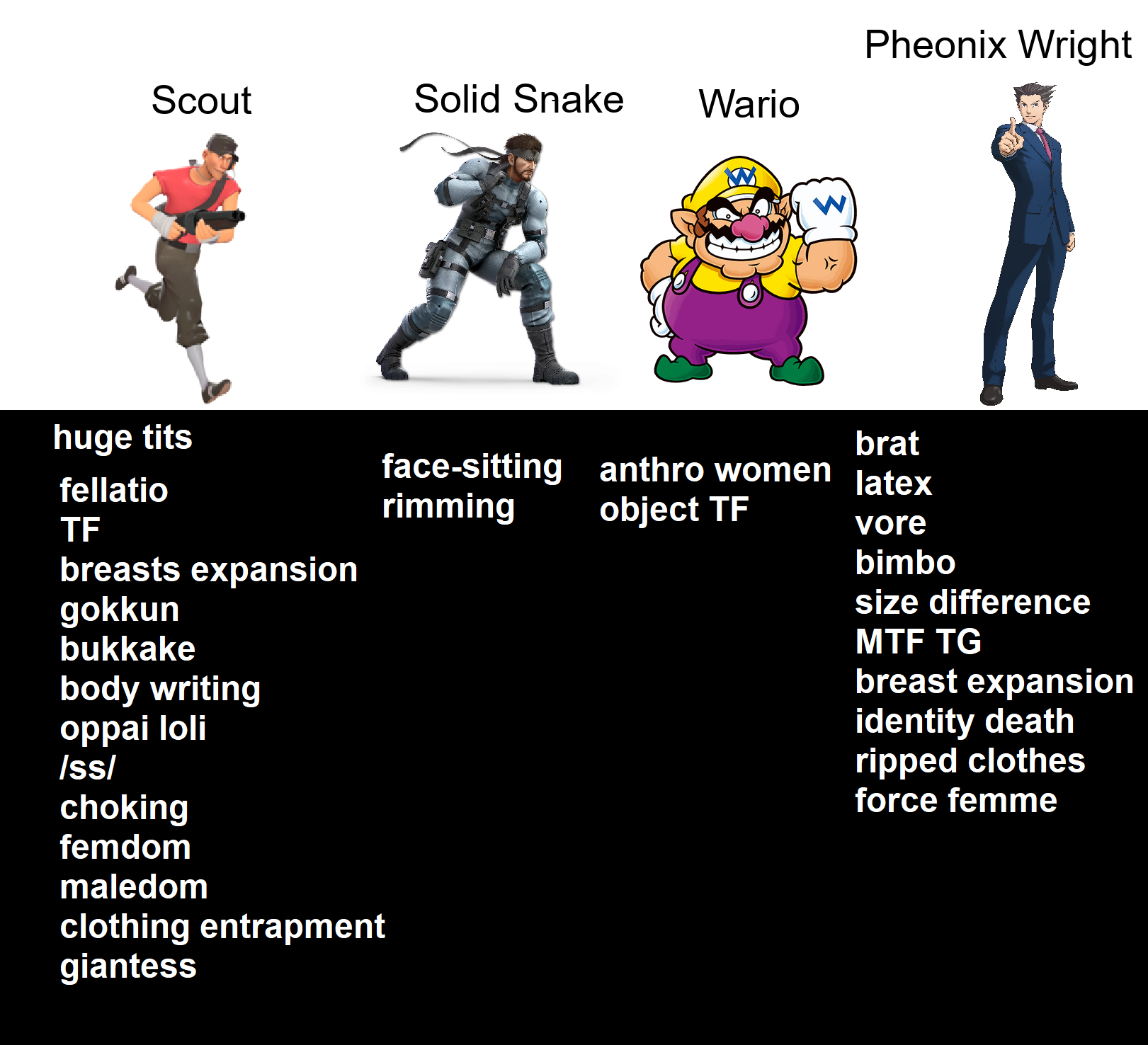 >>728351491>Phoenix want to be tf'dHe wants OTHER people to be tf'd, which is why he always finds an excuse to summon Mia