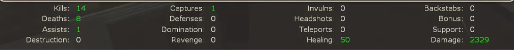 >>728357738Looking good. I was a shit Scout so I wound up playing more Heavy and Demoman