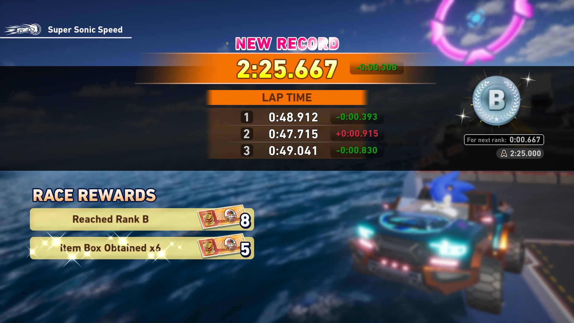 Finally got my platinum title thanks to a measly +4 from a 3rd place finish after getting a measly +10 from a first a few races before. I can now drop quick recovery and return to surfing in the regular mode without having to worry about killing my points every time I mess up and get last. However, I will have to say I came to like using tech drift on a handling car. It may not be the meta for combining with quick recovery, but it actually feels good to play. I will keep it around as a comfort build and for team modes.