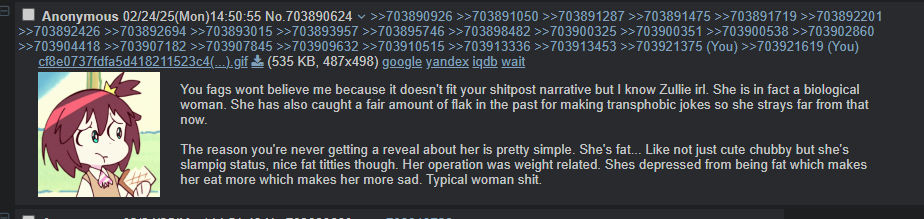 >>728513731Its cool. I just don't get why people here are so desperate for Zullie to be trans
