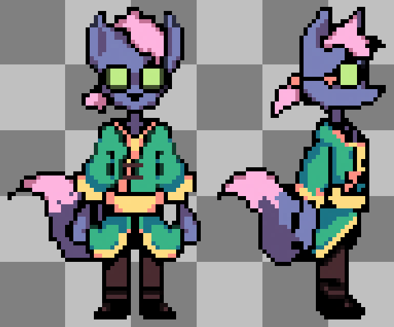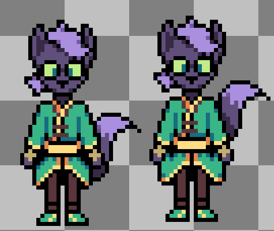 >>728506213Funnily enough, I originally wanted to use the artbook designs for my fangame, but recreating them made me realize they were stretched from their 1:1 pixel art. Unfortunately there weren't any official asset rips, so the only references I had was from a compressed image. I ended up having to create new sprites using a combination of the ones you see in-game with the artbook sprites as reference.>>728506680>what's your fangame?Can't reveal too much right now. Just stay tuned