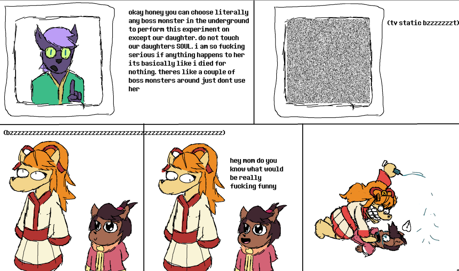 >>728561898On the subject of boss monster parents aging, how do you think it feels for boss monster children to know that they're slowly killing their parents just by living?