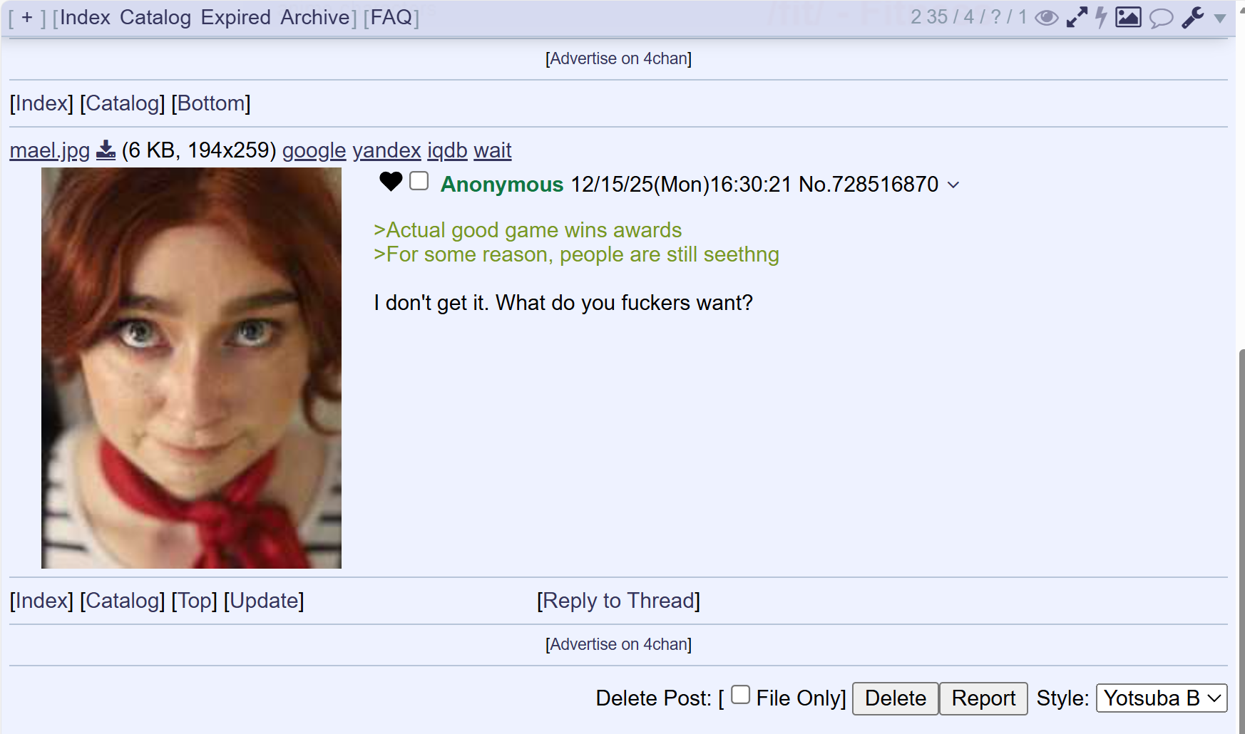 >>728516974>People didn't seethe like this over Elden Ring winning gotylmao retard you must be new here