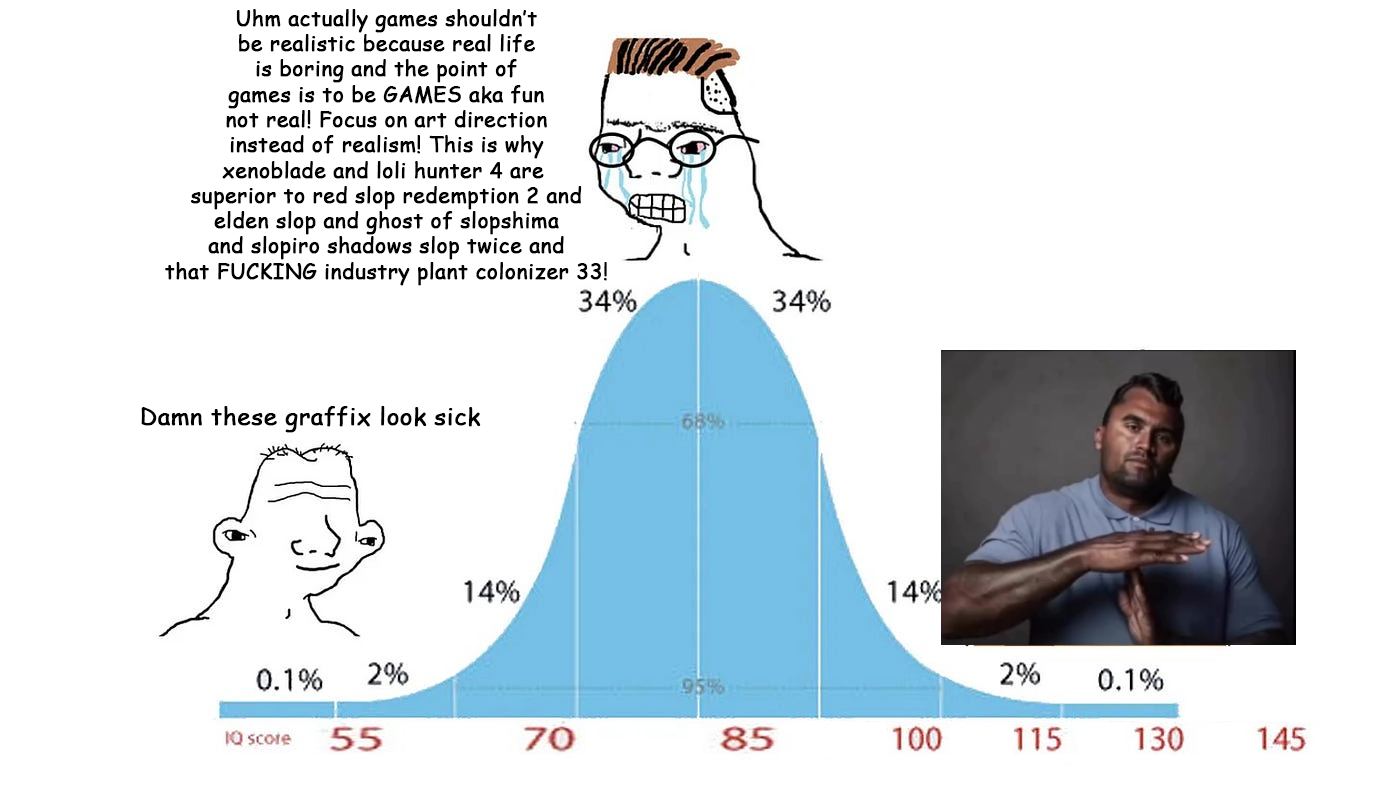 >>728516870Because if it released 7 years ago it probably would have gotten half the praise it did. And if it released 15 years ago it would have been completely unremarkable. In both cases, in just about any other year, it would have properly been rated a 7/10 or 8/10, but no better. But because it is current year and people are retarded, it is being treated like there has never been a game 1/5 as good as E33 to have ever been made. The truth is, other than being incredibly French, it is not particularly unique, is not ground breaking, and if you bother to step back and look at the actual game aspect it is pretty shallow and padded out even for a JRPG. For the people able to actually see this and not caught up in FOTM or blinded by the desert of the past 5 years of gaming, it bothers them that this game is treated like the second coming when it's really nothing special.