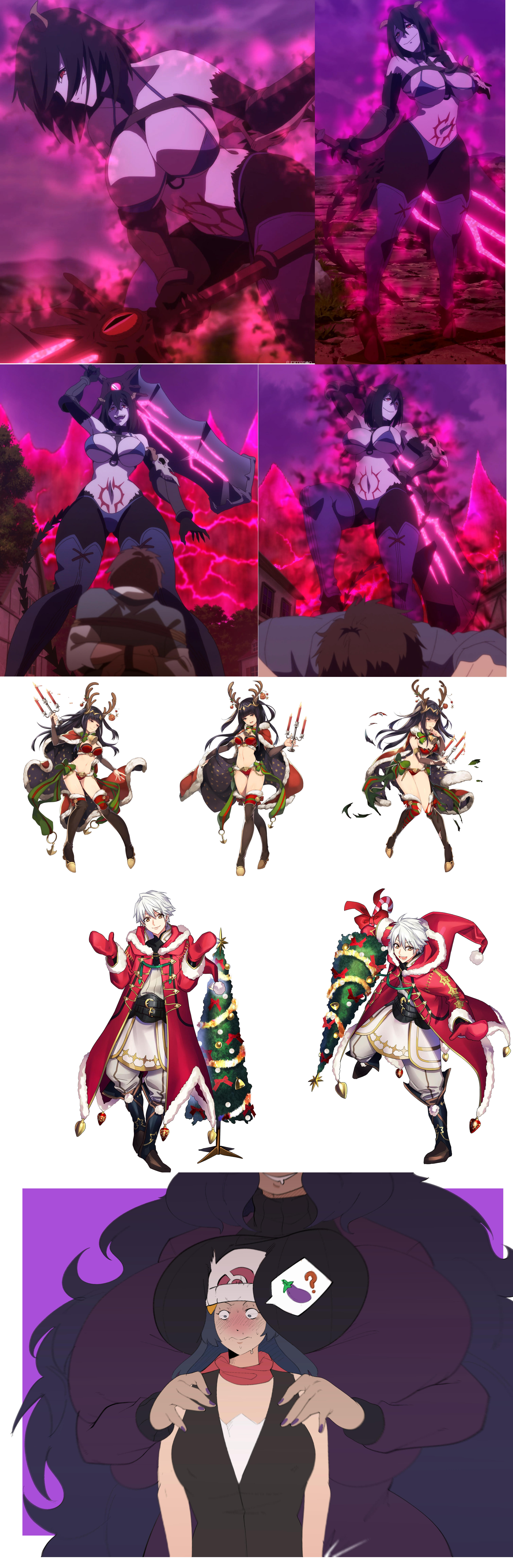 Draw Gullveig squeezing into the Mrs. Claus outfit on the right. Tight tummy, gigantic thighs, hair braid, puffy nipples, etc.