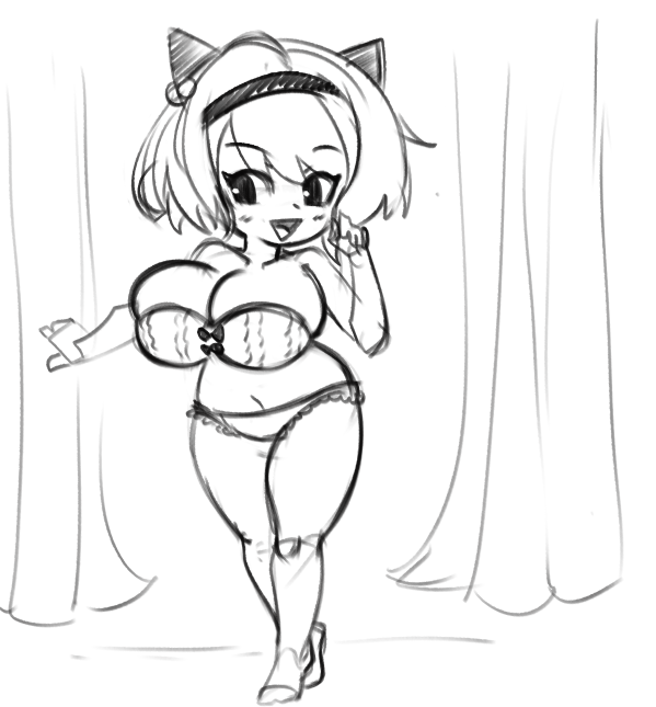 I'd like to request Catty from Undertale wearing Kitty Katswell's tight fitting uniform