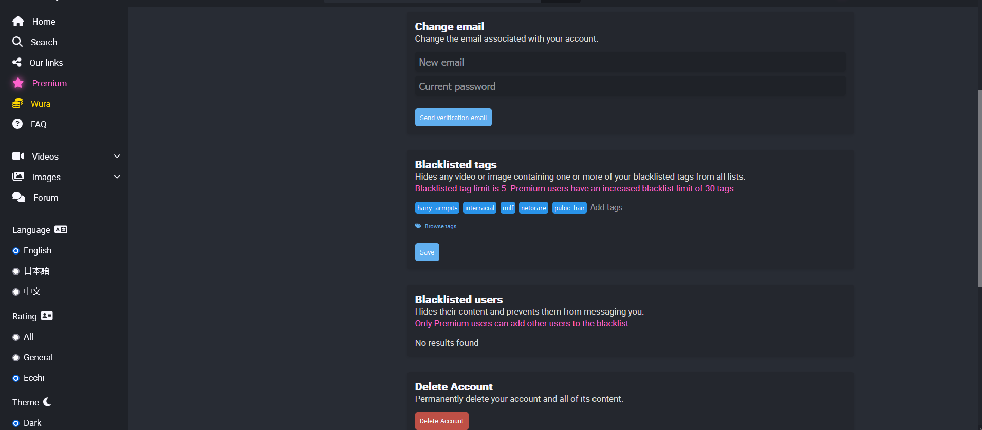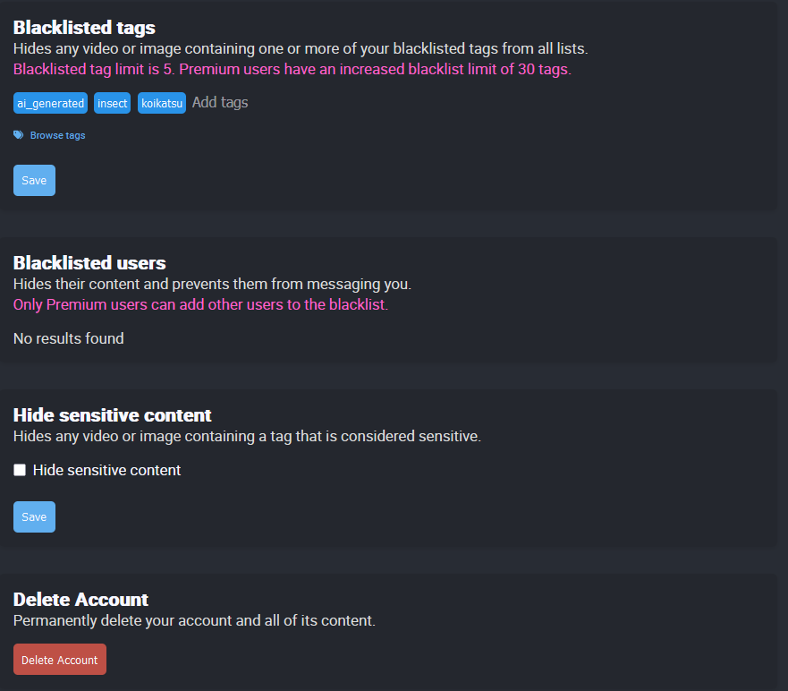 >>728735730I wonder if this setting becomes visible after your account is not "limited" anymoreThey always have to go through these loops in order to have loli on their site