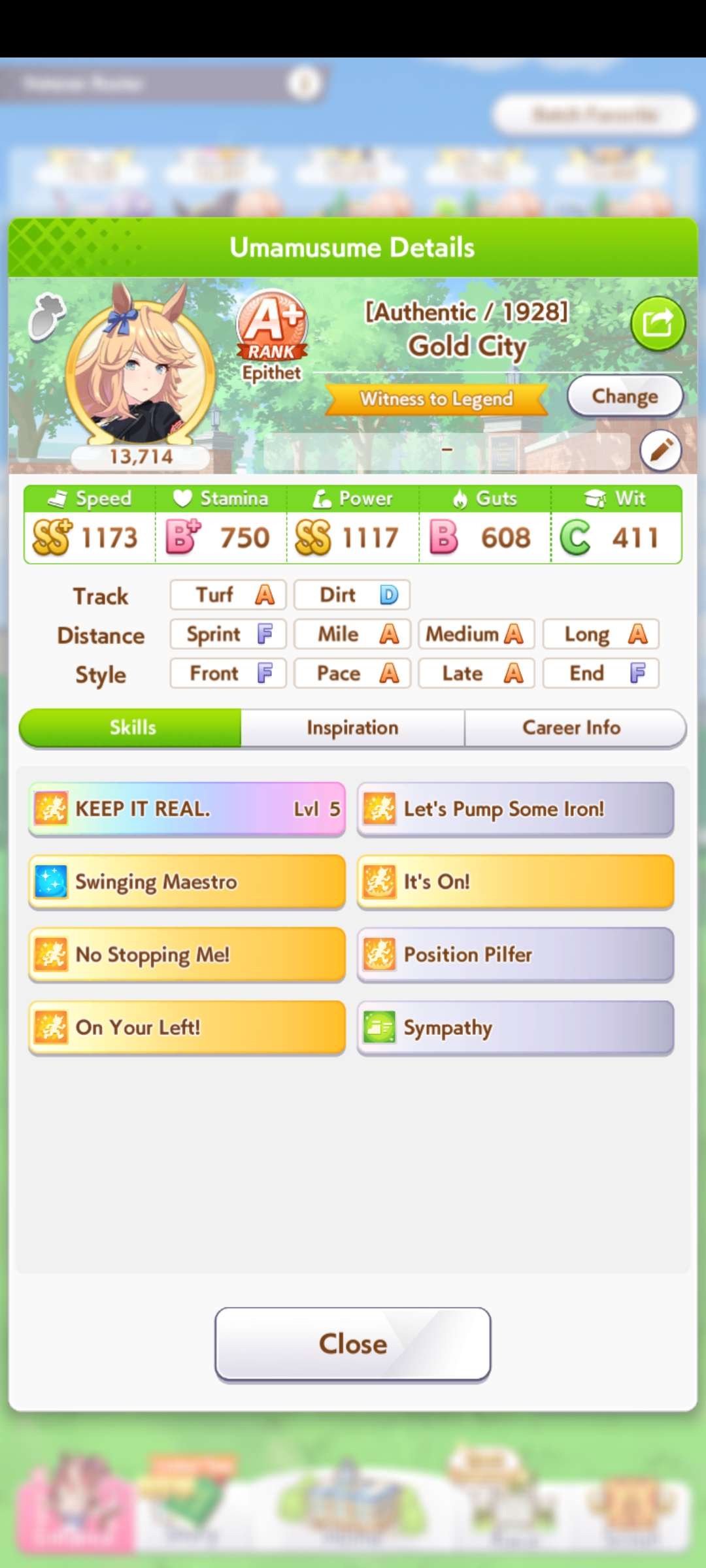 >>728675187I forget if it's this gold city but im pretty sure this is the one I ended up running. She did well but would habitually go way too far up and then not get to activate her nice accel skills. It's just how the meta goes sometimes and on day 4 of virgo I went against 9 different lobbies with atleast 6+ late surgers (I ran a taiki pace and bakushin front) where one of the two people completely fell on their face and handed the win to the other.>>728675409But thats an advantage, you get to do a free race those days