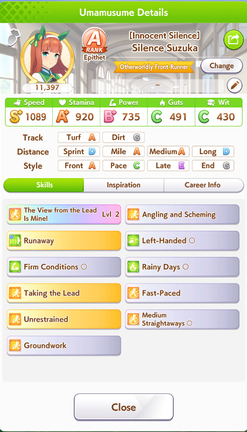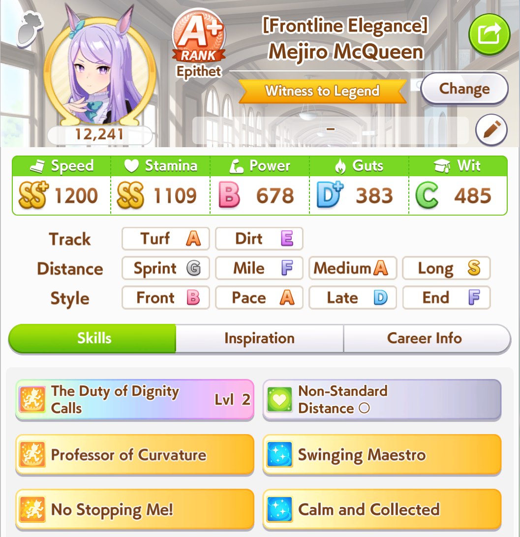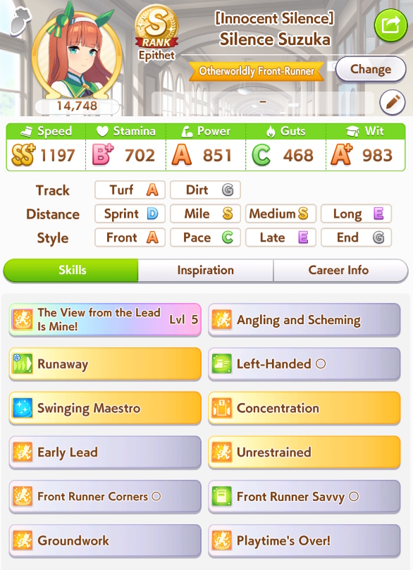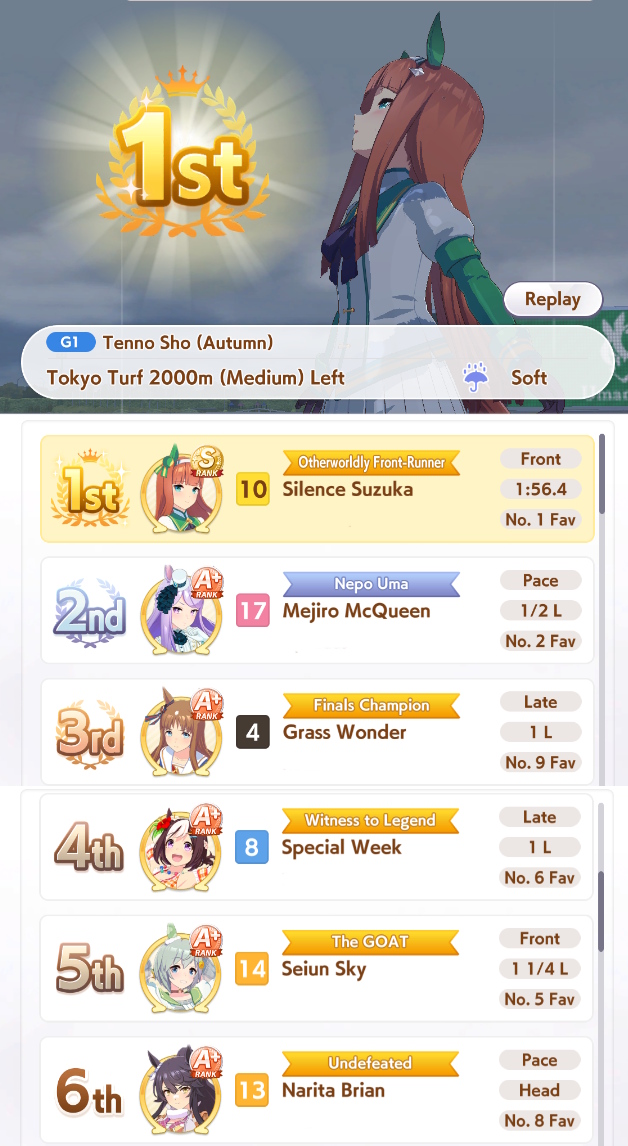 >>728675517for comparison, this shichi did slightly worse in balanced lobbies due to a lack of mid race positioning skills. It's just so meta dependent how you have to build some of these umas that its hard to build one that can guarantee wins.