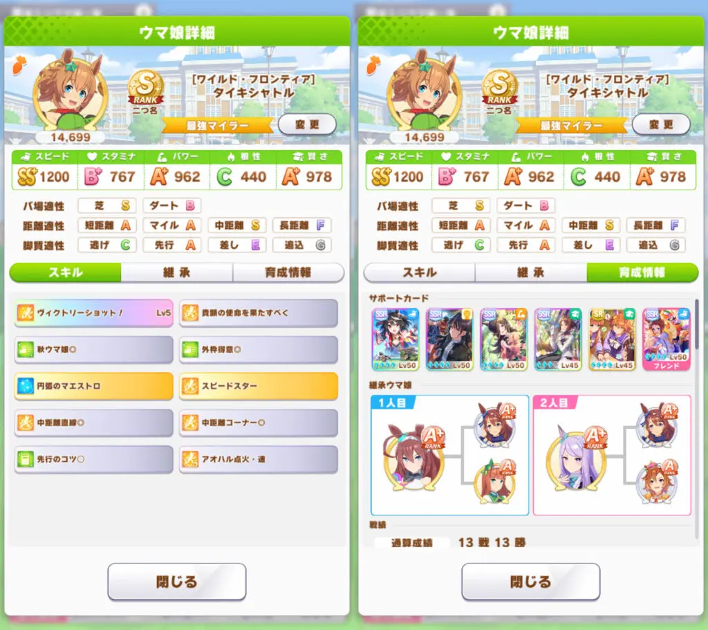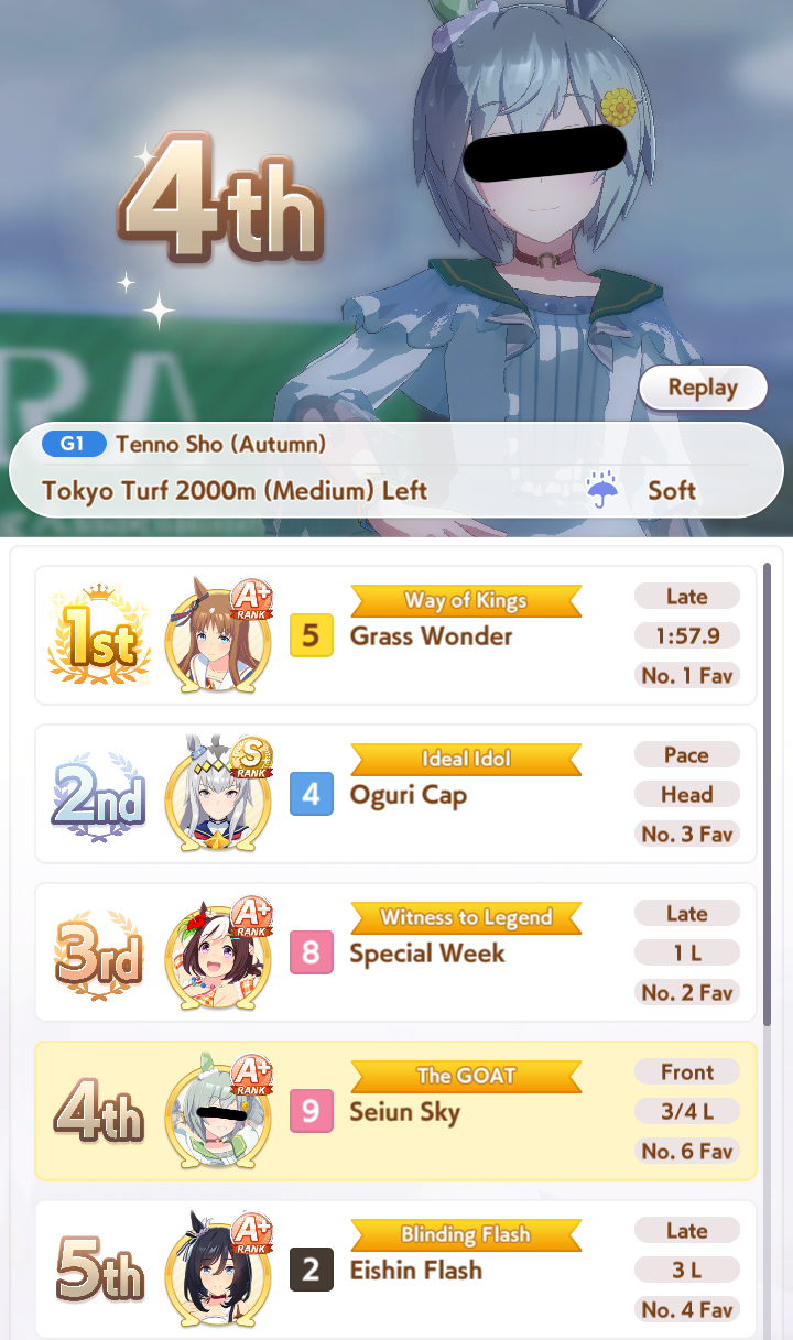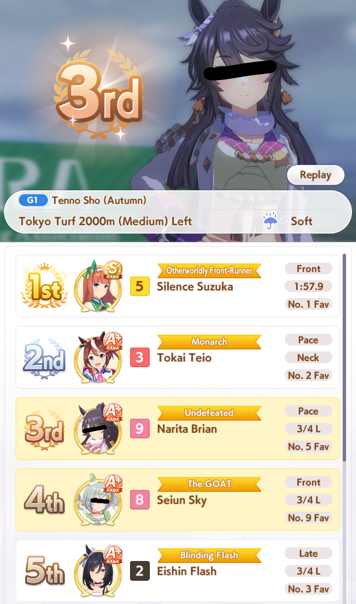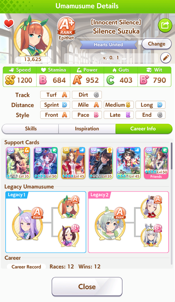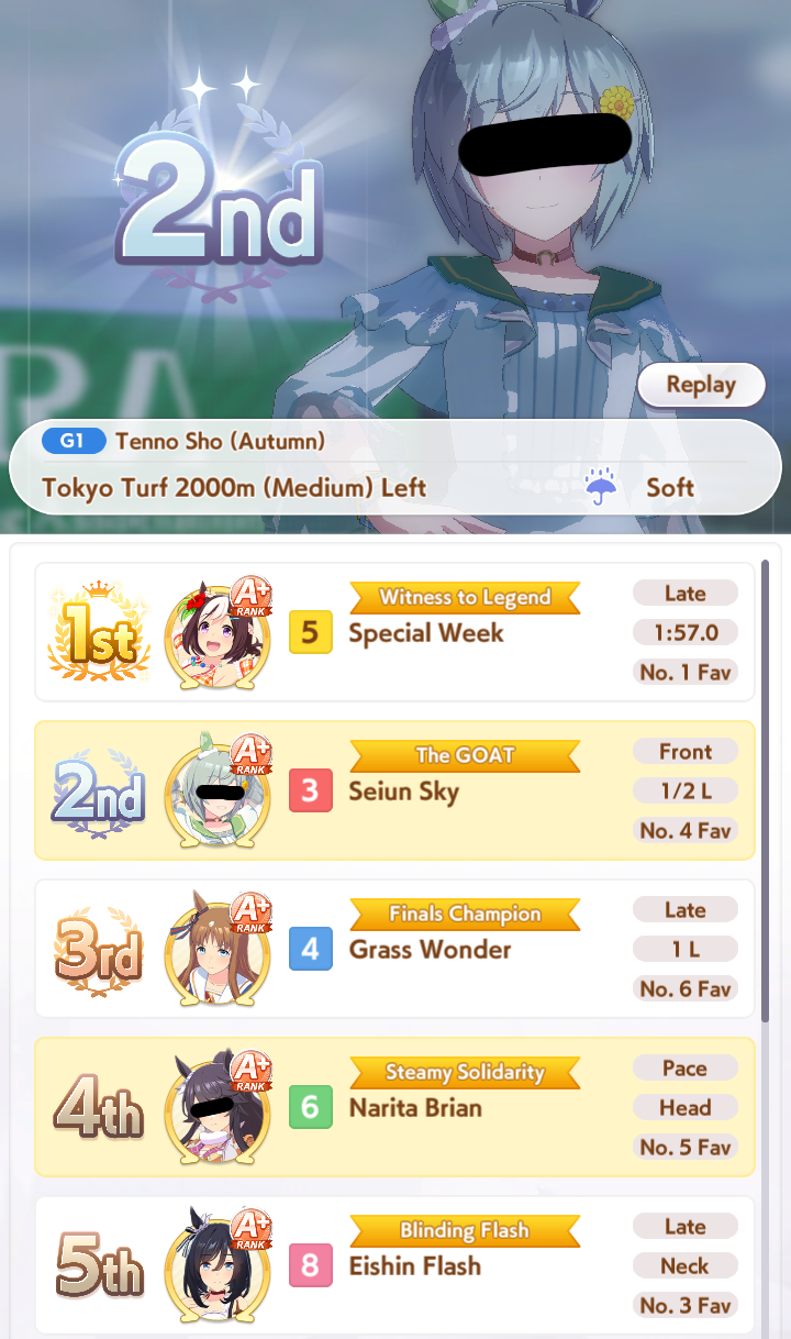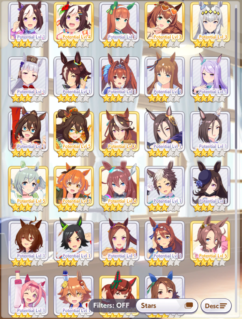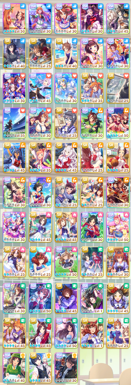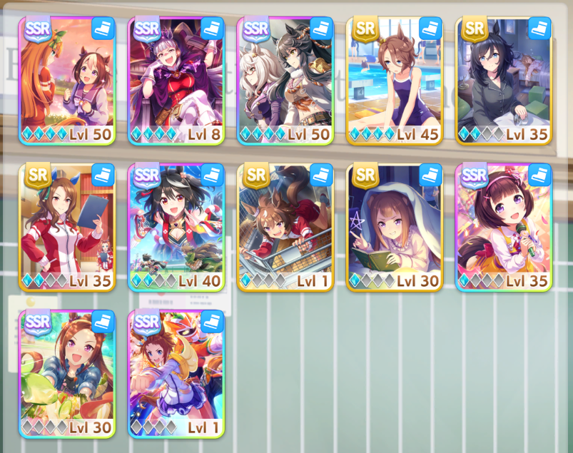 >>728657669Won't be starting until I get MLB Kitasan in a couple days. I feel like it'd be pointless for me to try making aces now when they'd just be outclassed be the ones I'd be able to make by using Kita + another borrowed SSRFor now I'm just working on parent breeding as a long-term investment