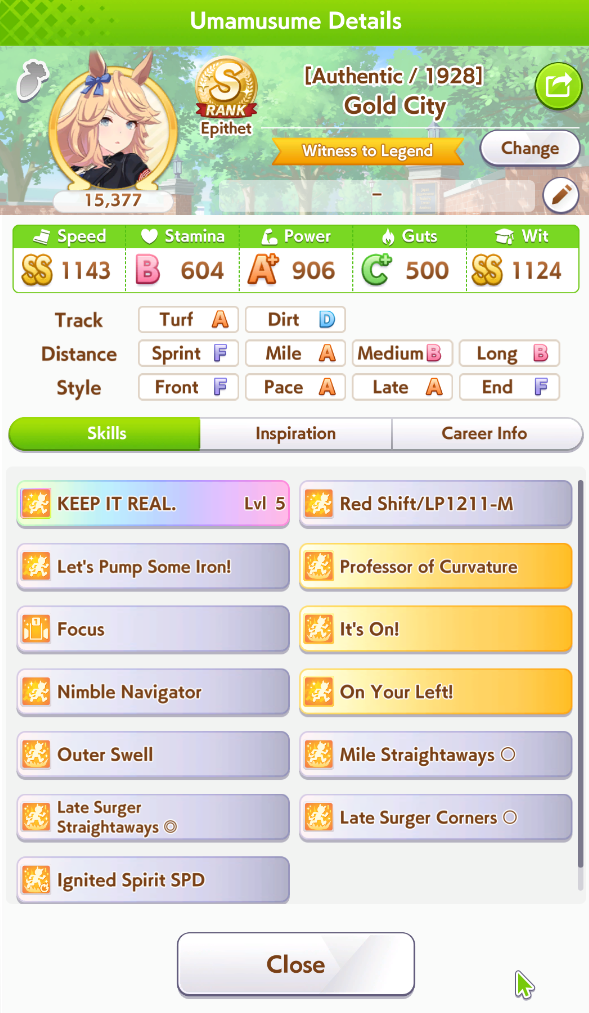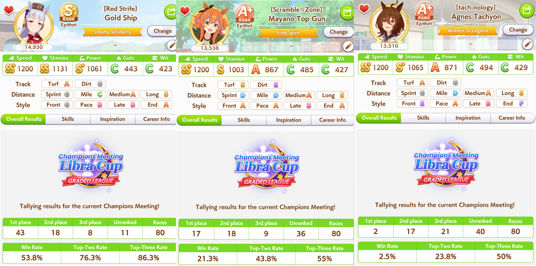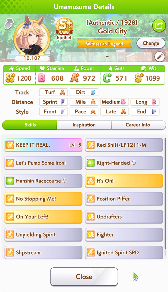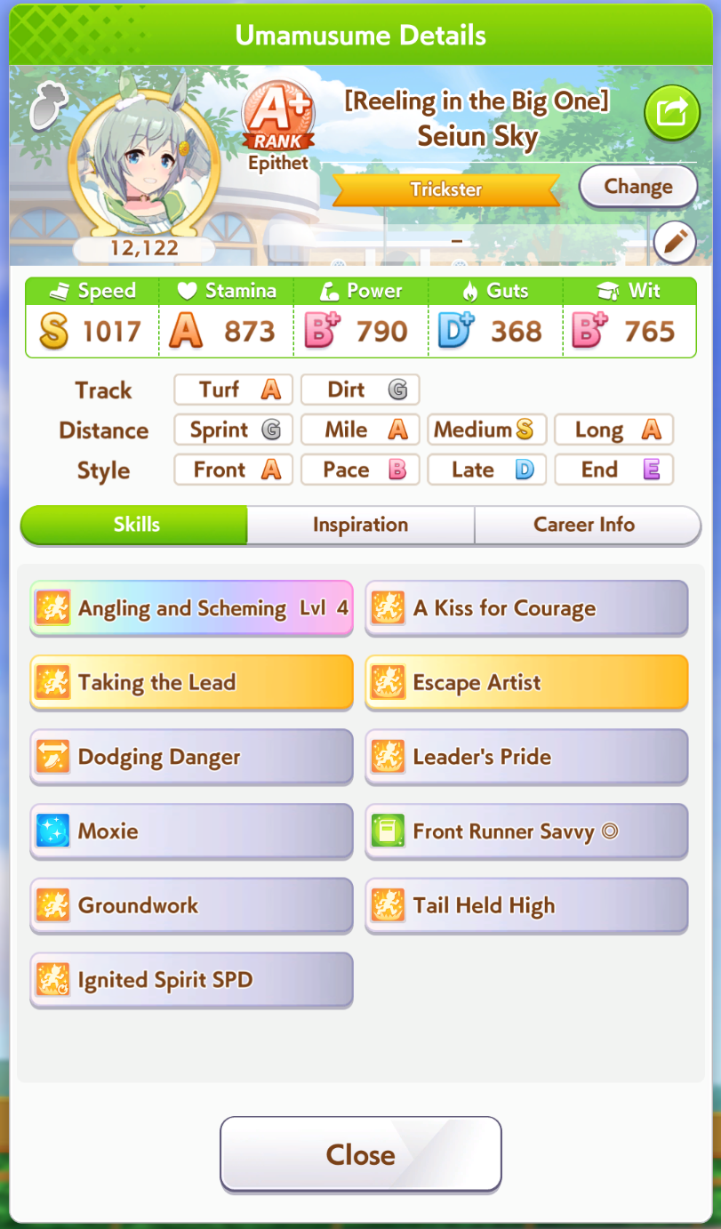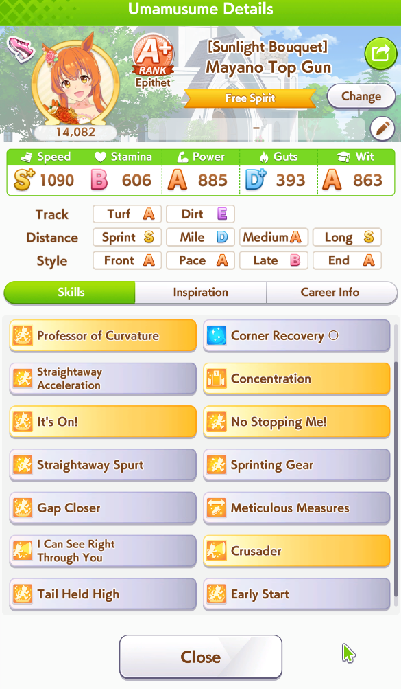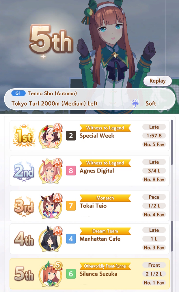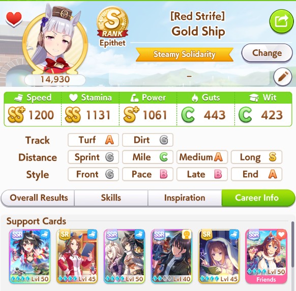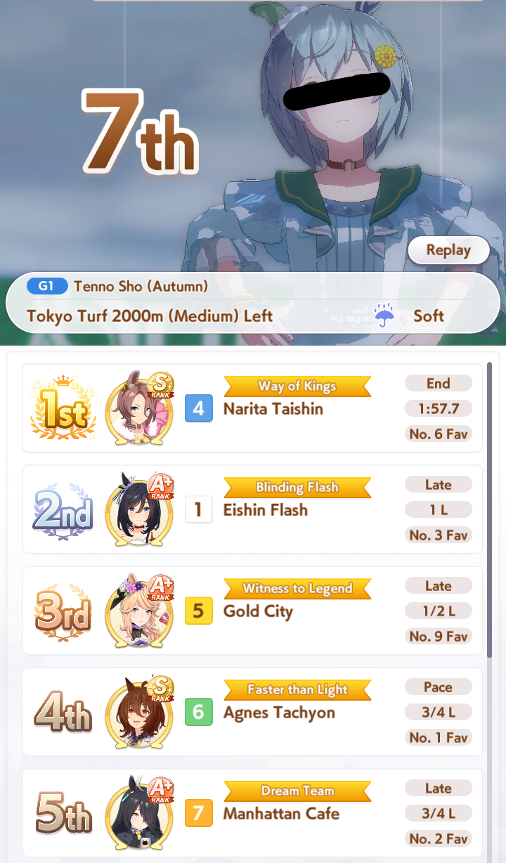 My Taishin and Gold Ship did well but I cannot get any good Top Gun and the one I thought was decent has a <10% chance win rate. Do I just say fuck it and make a debuffer with Hesitant End Closer and Intense Gaze tonight?