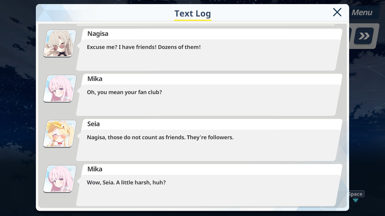 Weird event. The Mika/Ichika/Kasumi/Hasumi part of things was fun enough, but the Nagisa side felt too random and short. We needed to see Nagisa's side of things more.Seia had no place in this event, btw. She was basically a tagalong because muh tea party.