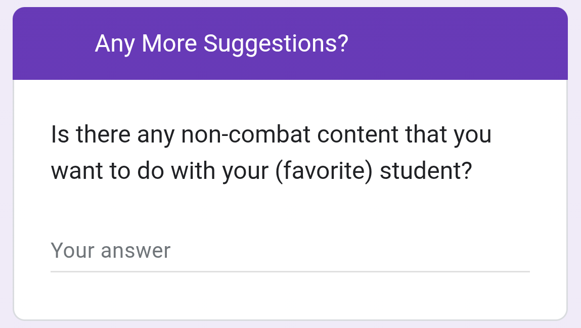Repostingthere's like 3 overlapping web freeshit giveaways.>Free shit from "My Office" web page>Free pyro survey>"Teatime on the Beach" pageAll of that is separate from the login bonus and "web event" popup. You might not notice all this stuff if you don't dig around on the announcements page, so just FYIhttps://forum.nexon.com/bluearchive-en/board_view?board=3218&thread=3303922https://forum.nexon.com/bluearchive-en/board_view?board=3218&thread=3303921https://forum.nexon.com/bluearchive-en/board_view?board=3218&thread=3297330https://forum.nexon.com/bluearchive-en/board_view?board=3218&thread=3274080https://forms.gle/4DaM3bvLkqAkvX7q9