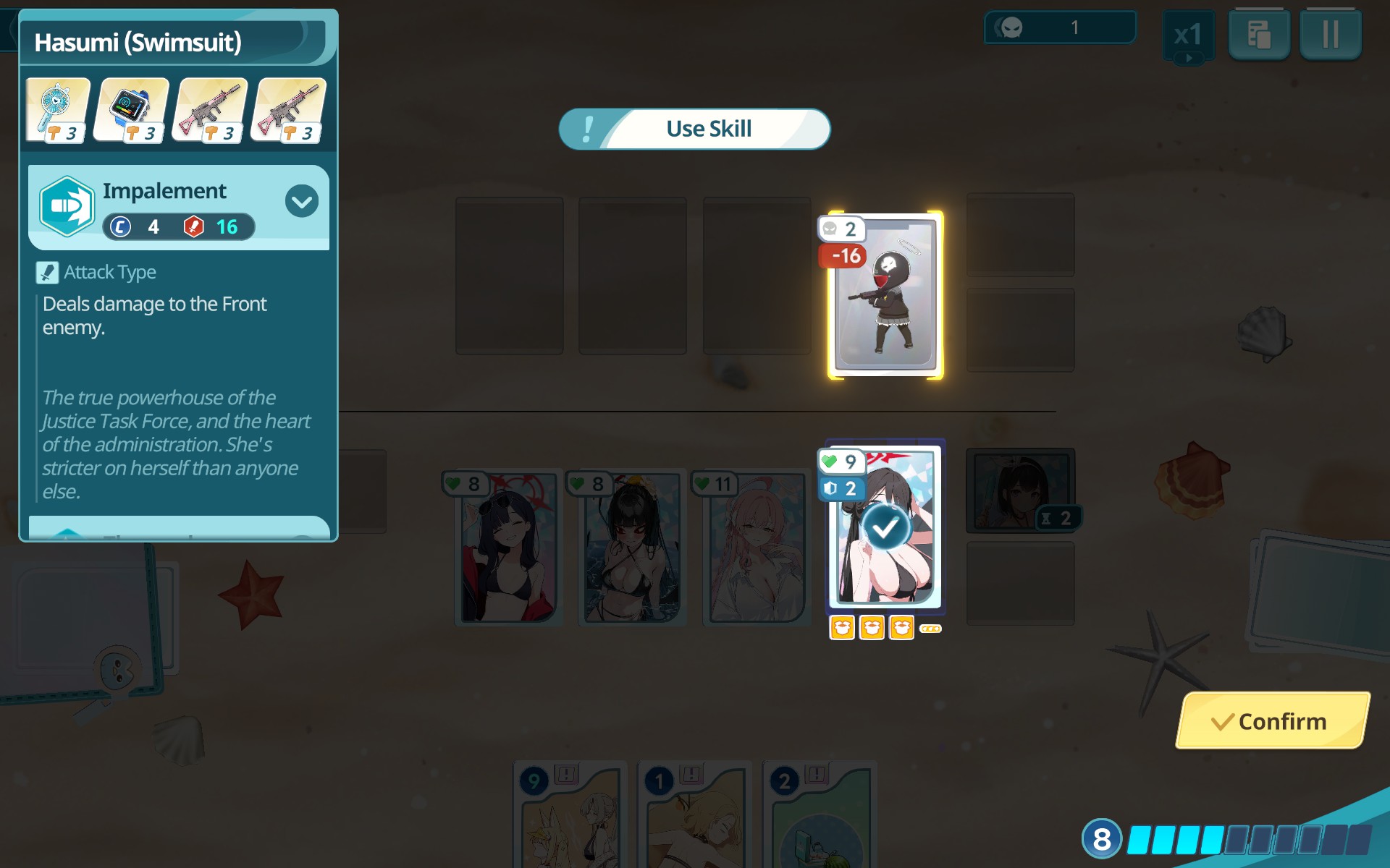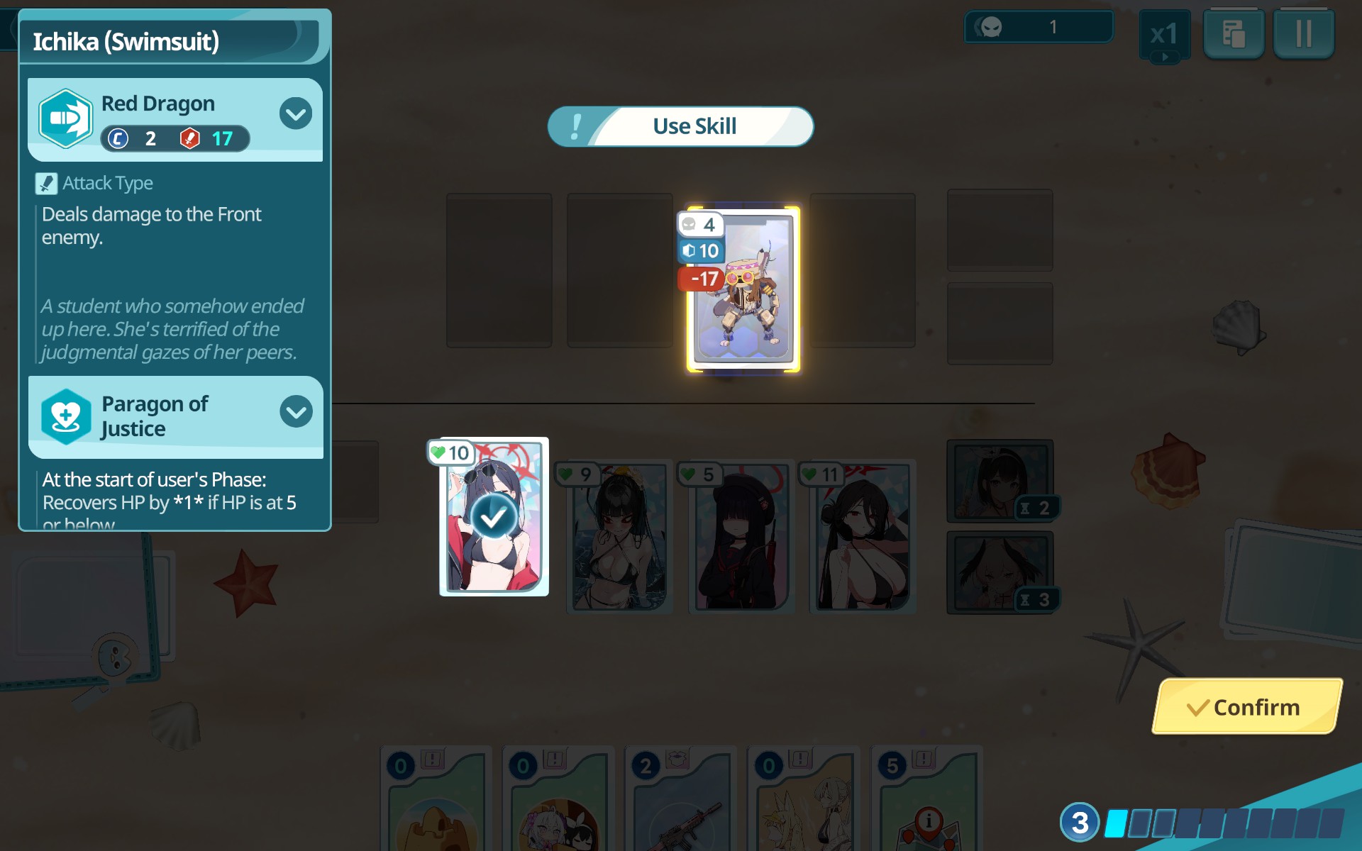 >>728687109Have Mika chill in the back until you can build enough Energy to attack with her every turn.