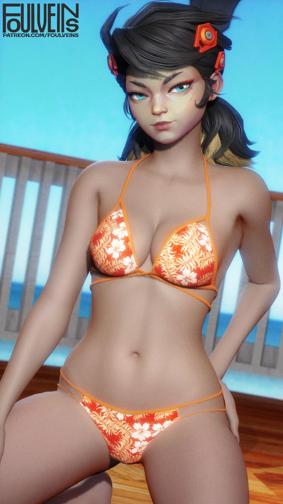 Now add her bikini skin with a full render and we're good to go.