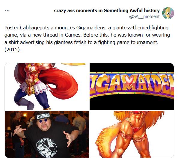 >>728726017>goons started creating their own versions of gigamaidens to fuck with josh since he couldnt finish his game>https://forums.somethingawful.com/showthread.php?threadid=3720984https://forums.somethingawful.com/showthread.php?threadid=3966113