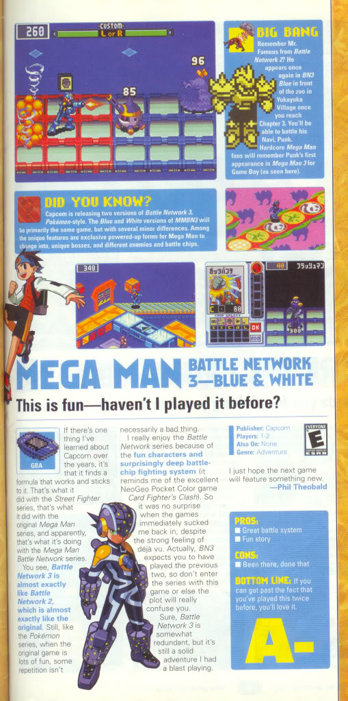 >>728722569Battle Network 2 was probably my first game but I borrowed it from a friend and I guess the battery in the cartridge was dead since it would never save. BN3 was the first game I owned and I loved it.