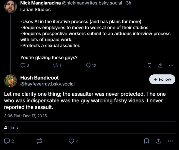 reminder that these people are a shitty QA tester and a jr artist that got let go from entry level positions