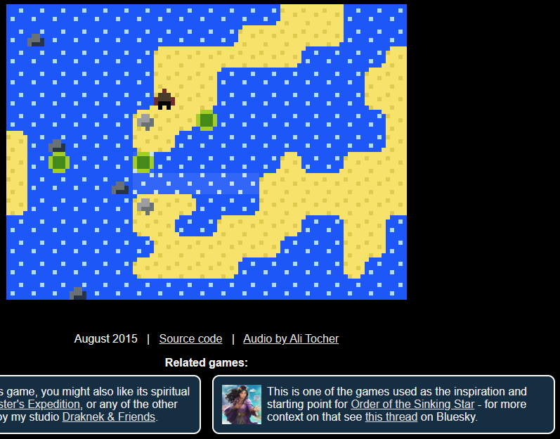 >>728760883I've been doing research into this game after the trailer released (reading articles and posts by people involved) because it was terrible and told me jack shit, and it led me to playing the 4 games that were a direct inspiration for the 4 worlds in Order of the Sinking Star, and they are actually amazing. I'm now 100% certain that this will be another Jon Blow masterpiece. And now for the games in question:>North: Heroes of Sokobanhttps://sites.math.washington.edu/~ostroff/puzzles/Heroes_of_Sokoban.htmlhttps://sites.math.washington.edu/~ostroff/puzzles/Heroes_of_Sokoban_II_Monsters.htmlhttps://sites.math.washington.edu/~ostroff/puzzles/Heroes_of_Sokoban_III_The_Bard_and_The_Druid.html>East: Mirror Isleshttps://alan.draknek.org/games/puzzlescript/mirrors.php>West: Promessthttps://silverspaceship.com/promesst/https://silverspaceship.com/promesst2/>South: Skipping Stones To Lonely Homeshttps://alan.draknek.org/games/puzzlescript/skipping-stones.phpI think it's funny that east and south worlds have the same names and the original games because they aren't copyrighted.