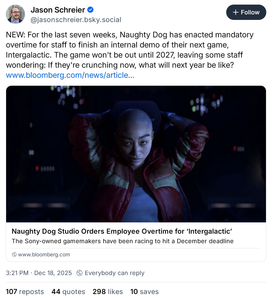 >>728806923Imagine working at ND and being subjected to crunch for every project you work on