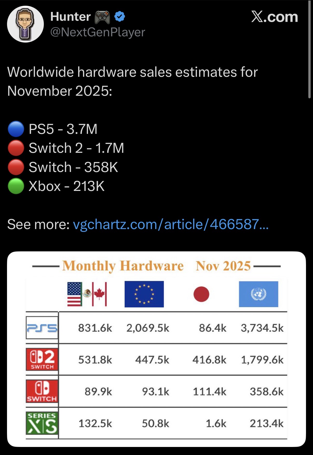 >Switch 2 – 190.944 (3.362.777)>Switch – 31.344 (36.345.184)>PlayStation 5 – 18.912 (7.259.671)Sony will never recover in Japan