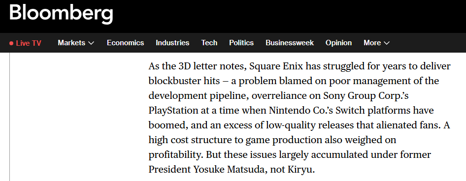 >>728832314That guy from Bloomberg is like obsessed with both Nintendo and Square Enix so I'm not surprised