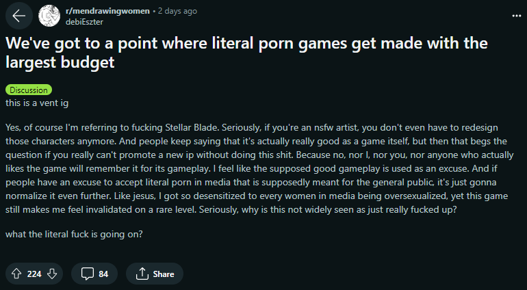 >>728859504>before: stellar blade is for losers and incels!>after: stellar blade is such a normalfagcore game...