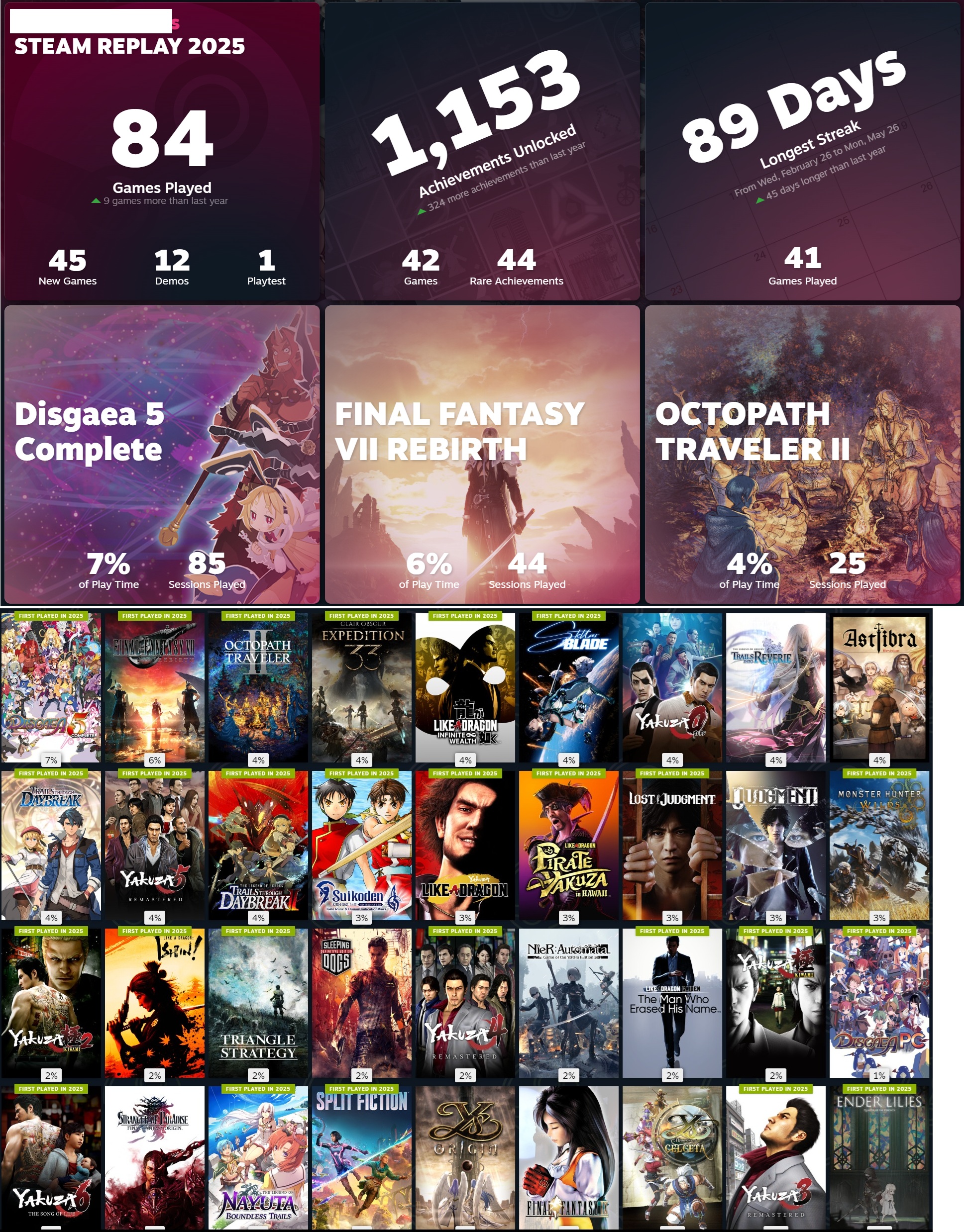 >>728853716I also played MH Wilds, MH Rise: Sunbreak, Marvel Rivals, and The First Descendant this year.