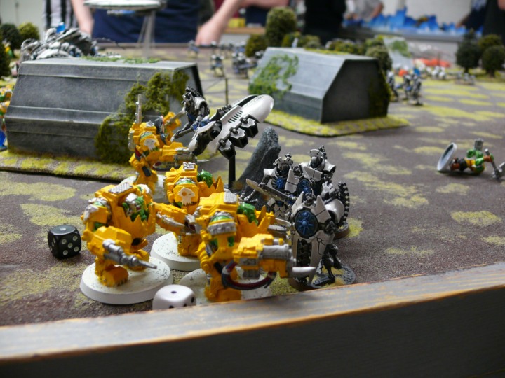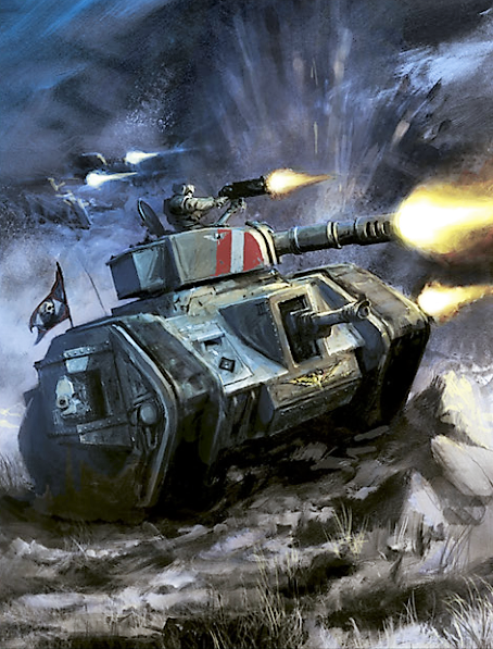 I like the Imperial Guard. I have a lot of tanks, and there's Chaos Space Marines over there that need to get Tank-Shocked.